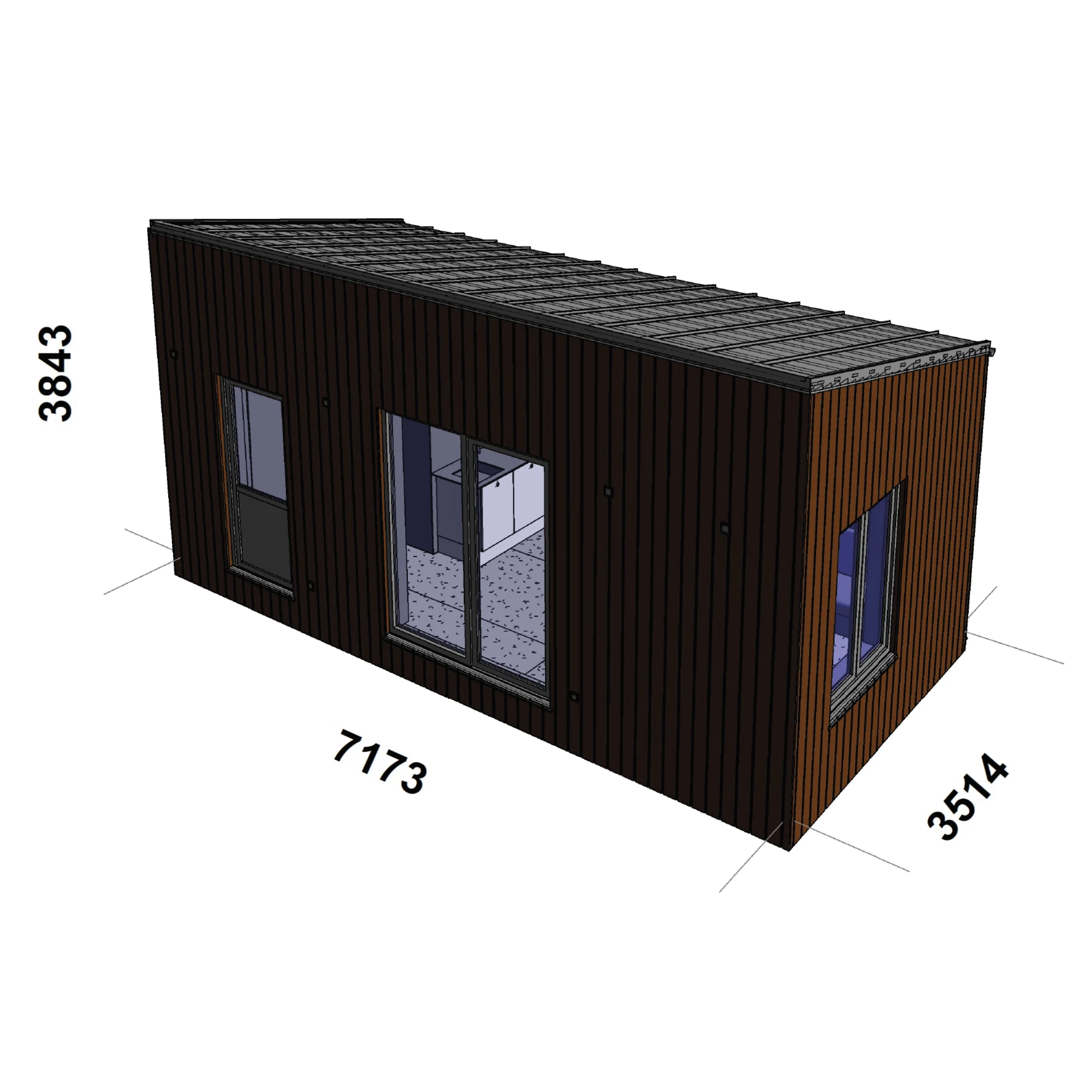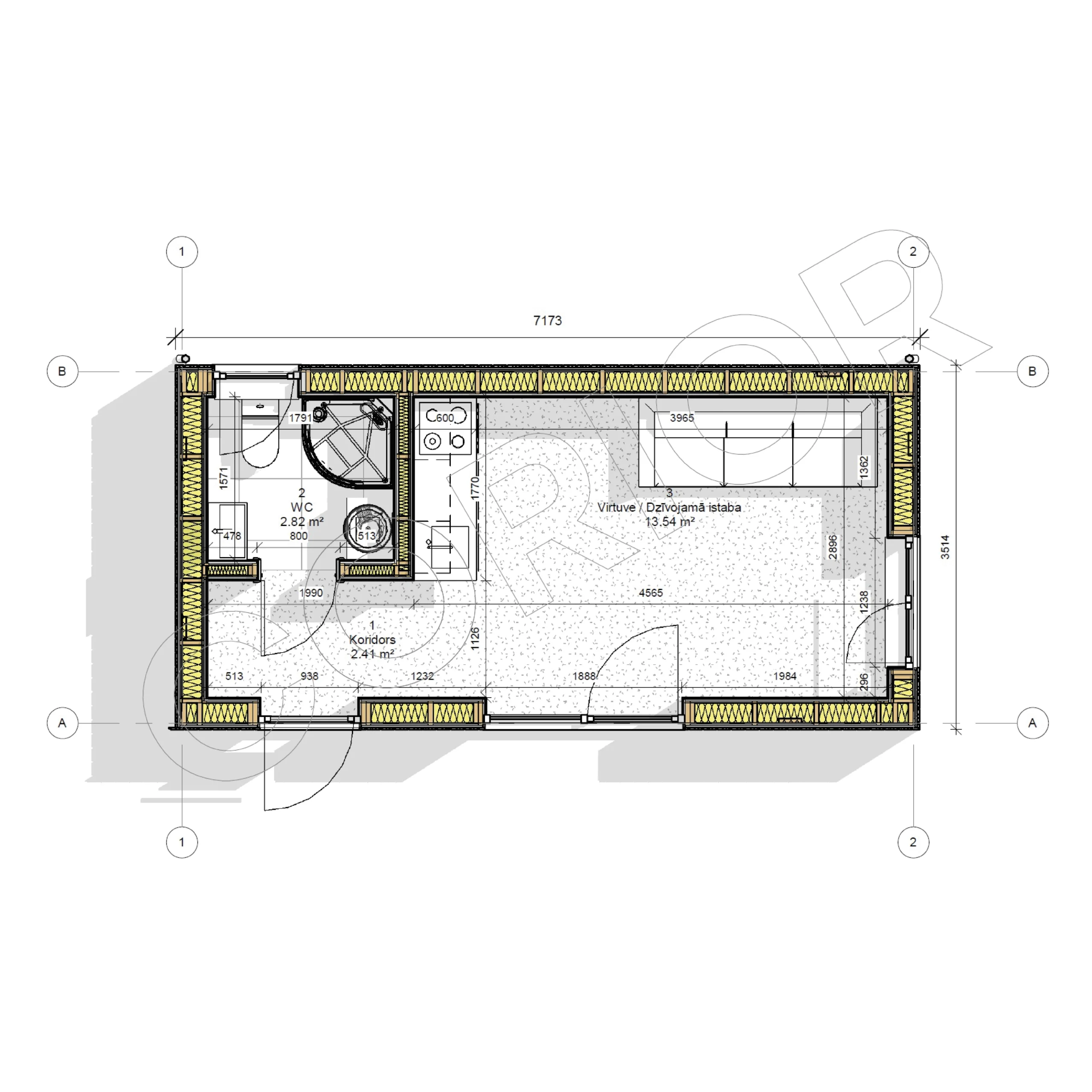 Wooden posts 50x200mm for the walls of the house and the load-bearing roof covering, thermal insulation for the walls 200mm, for the roof 300mm and for the floor 300mm