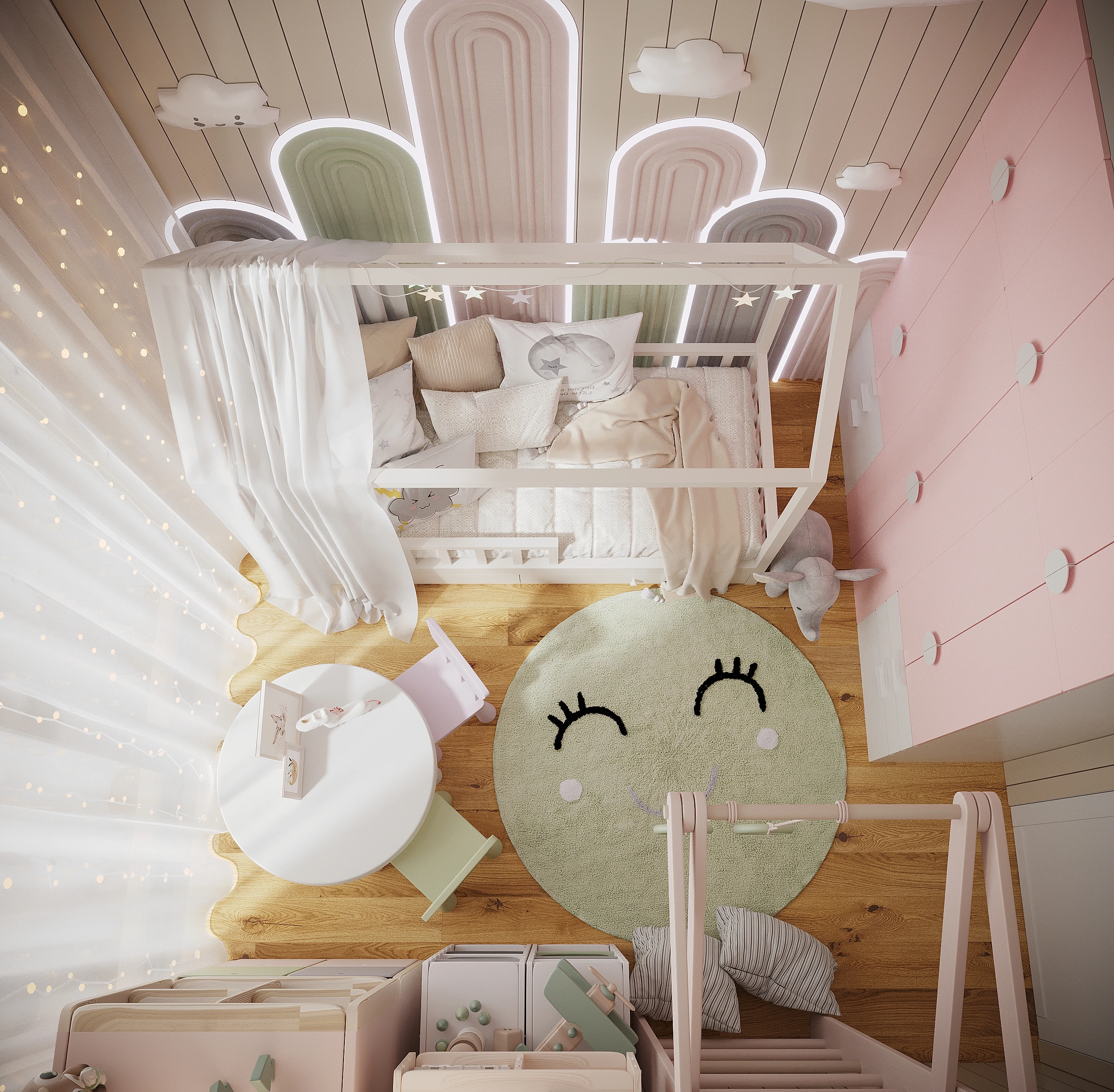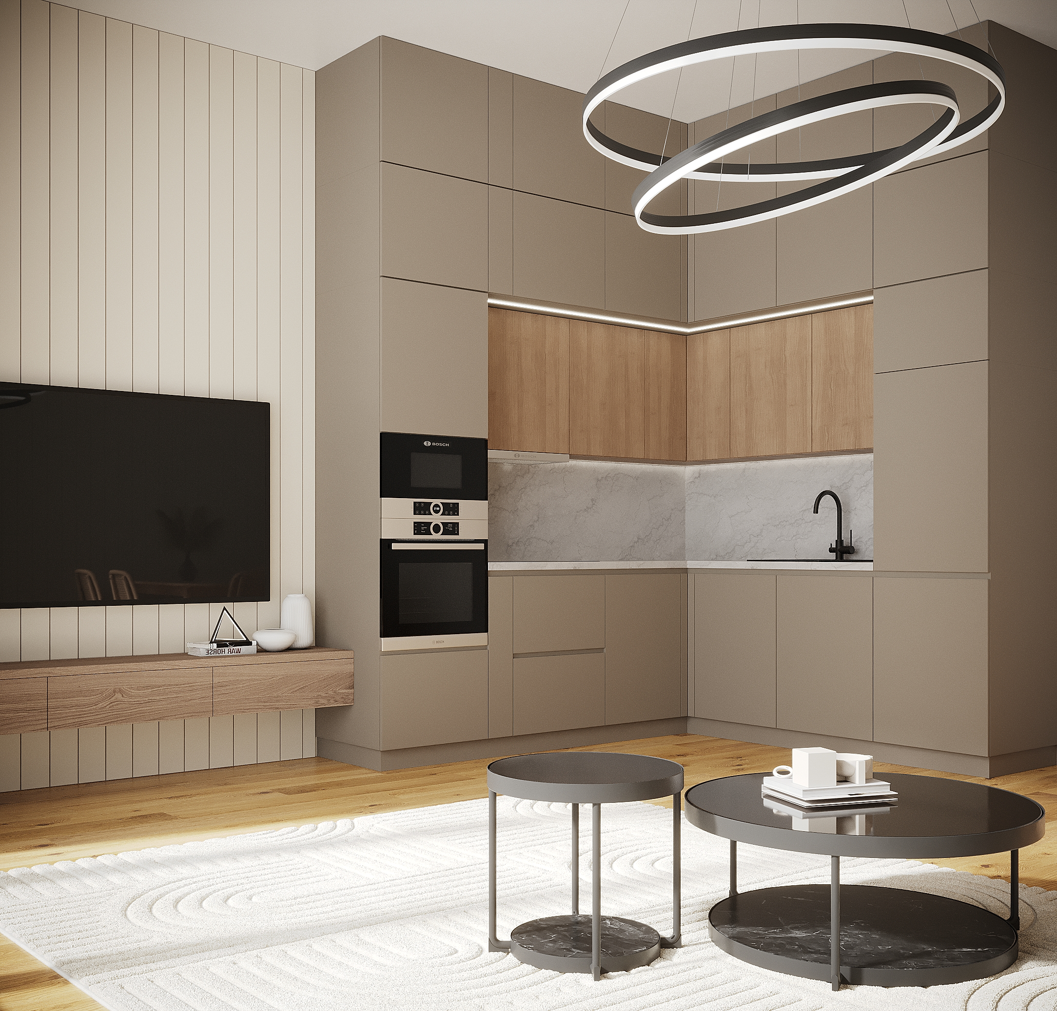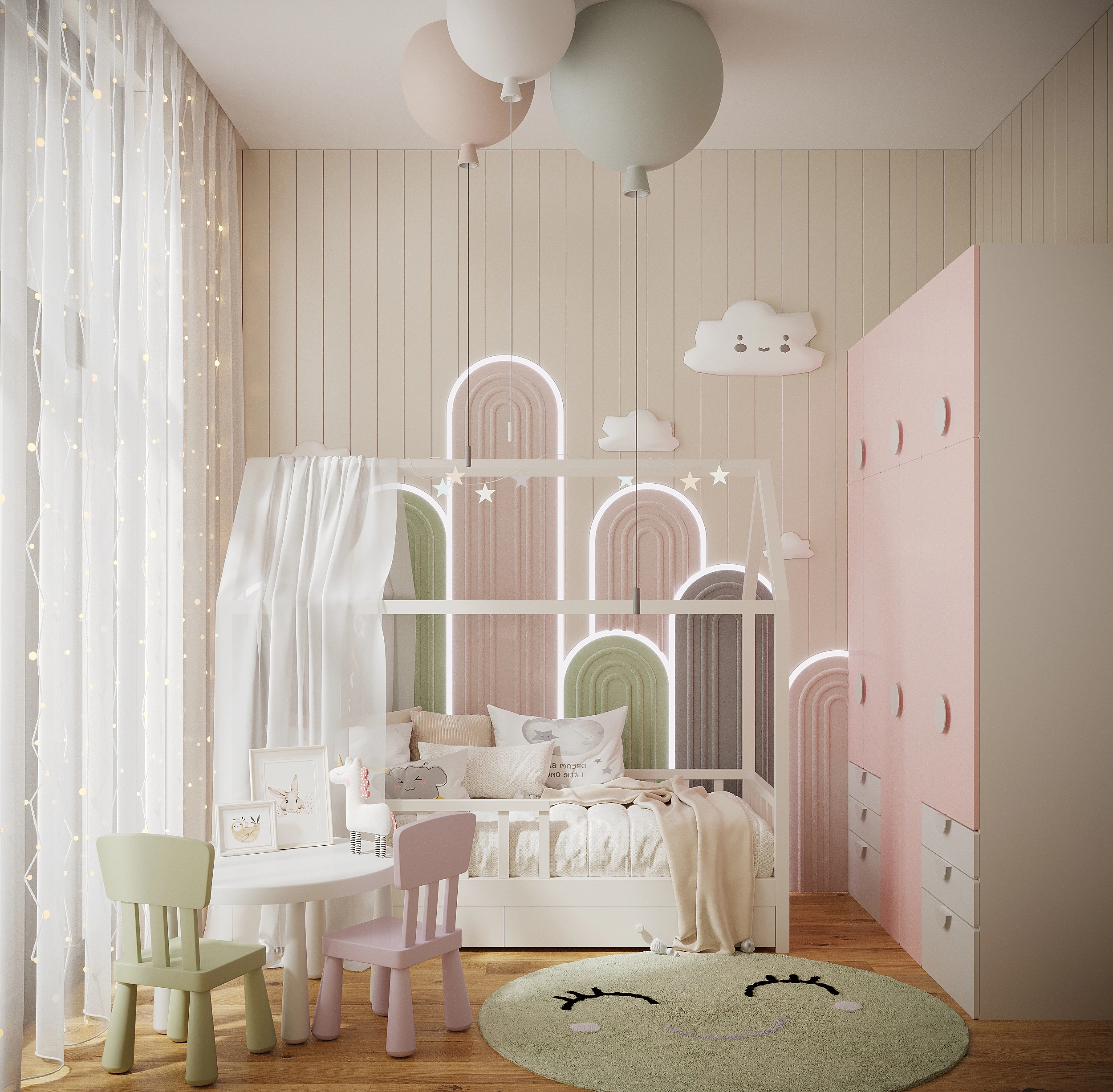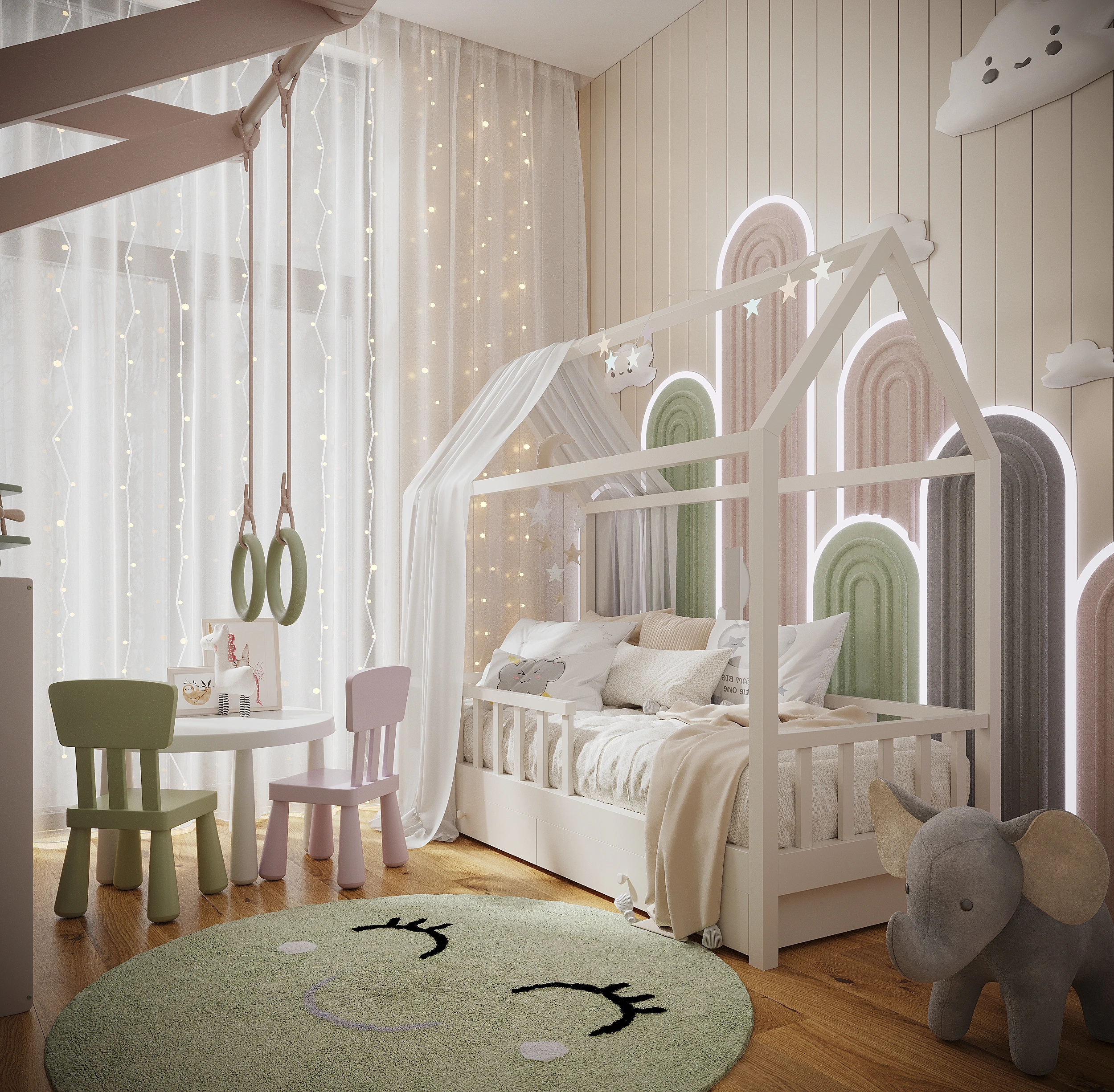 Automatic distribution, internal pull-out networks, LED lighting in all rooms, guest room and bedroom - chandelier; sockets and switches